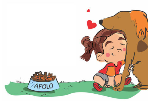 Ilustração Menina Abraçando o Cachorro